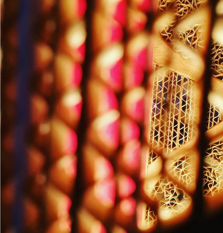 Encadrements, tableaux et miroir en marqueterie de carton.