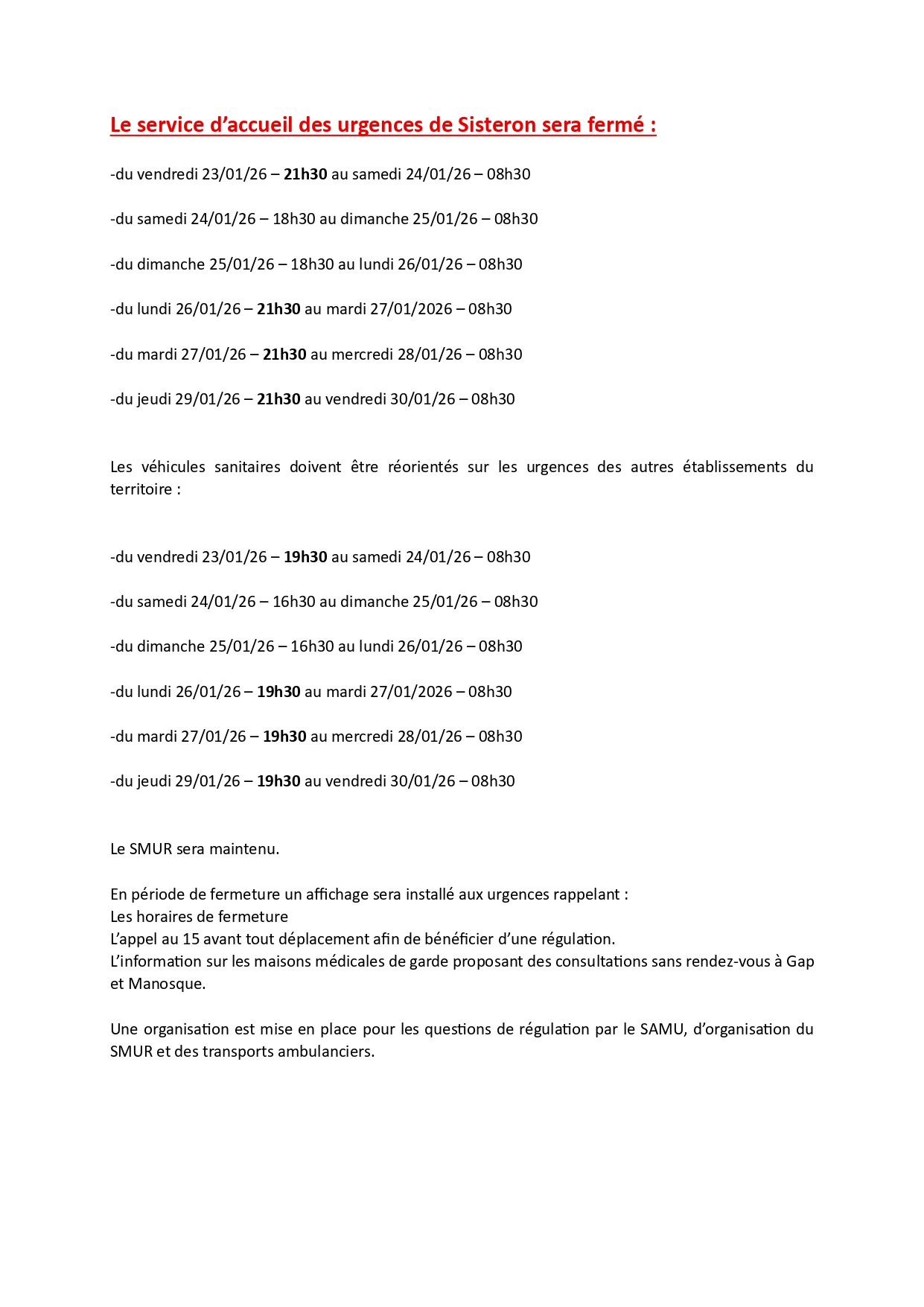 FERMETURE URGENCES SISTERON